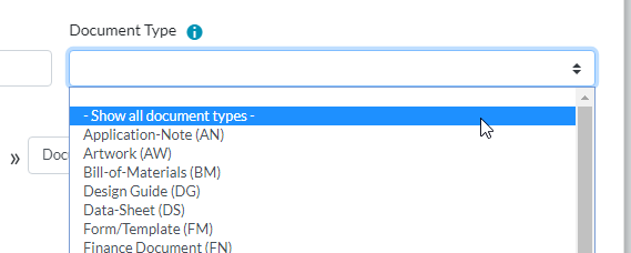 DH ist in der Regel keine Standard-Dokumentenart, so dass Sie eventuell auf Alle Dokumentenarten anzeigen (Show all document types) klicken müssen, um die Dropdown-Liste erneut anzuzeigen.