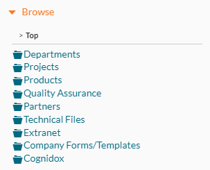 - Erweitern Sie das Feld Durchsuchen (Browse), um eine Ansicht der Top-Level-Kategorien im QDC eQMS-Repository zu öffnen.