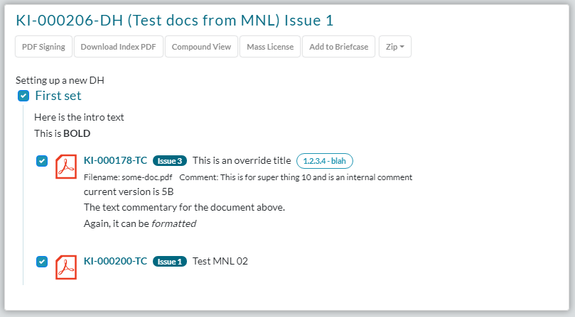 Alle Dokumente, die lizenziert werden können, werden ausgewählt, ebenso wie das DH-Dokument selbst.
