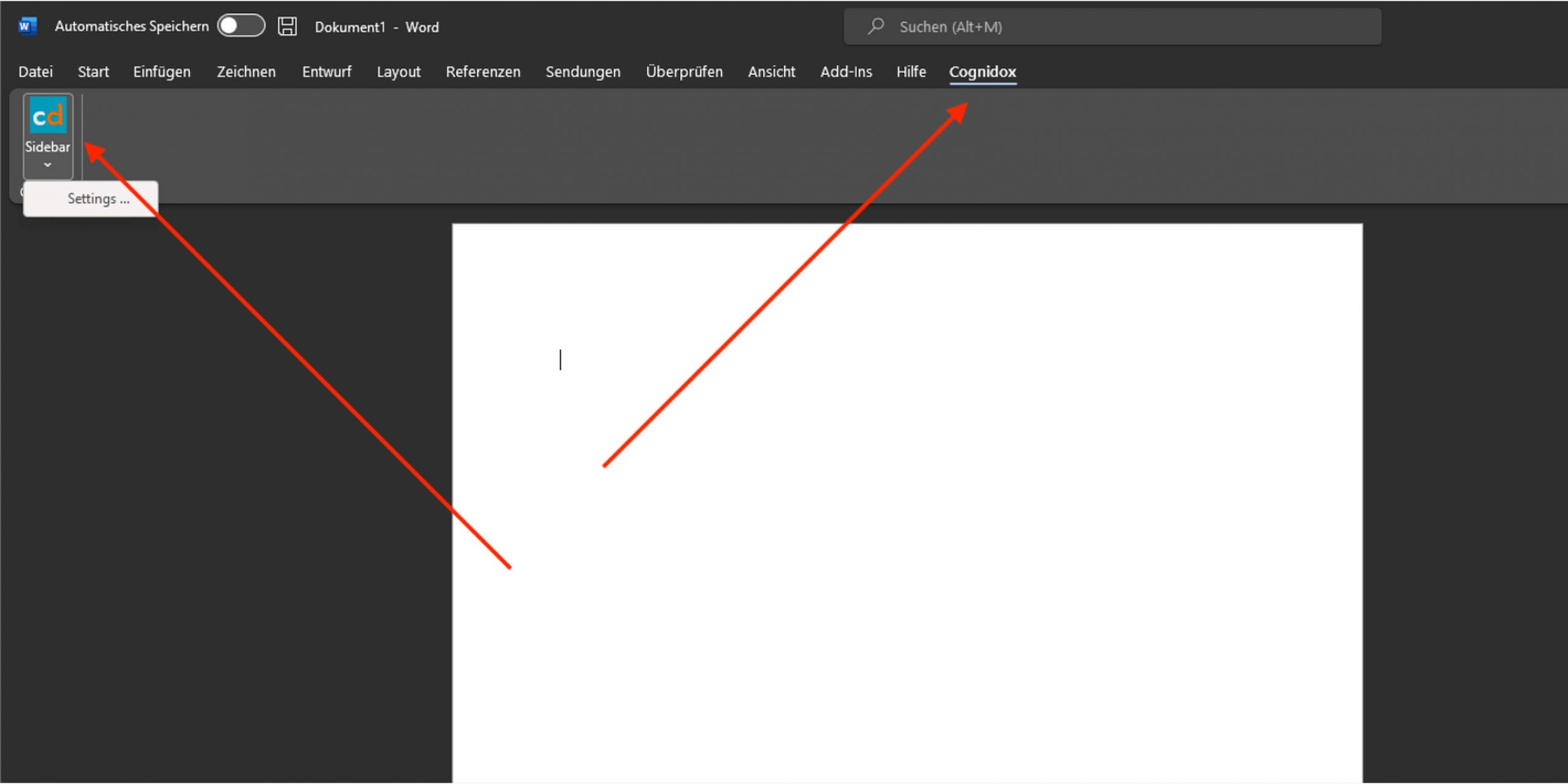 So sieht das Office Add-in zum Beispiel in Word aus: